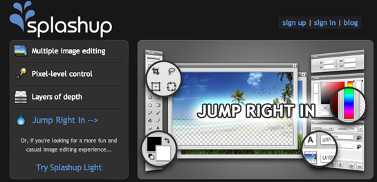 You won't need Photoshop when you can have splashup. This is online photo editing tool is very similar to Adobe's Photoshop. It offers up a very complete package of image editing tools. You can add layers, layer effects, filters, brushes and shapes to name a few. You can save your images locally and continue working on them later on. Even better, you can you can start with a blank image or import your pictures from Picasa, Flickr and Facebook.