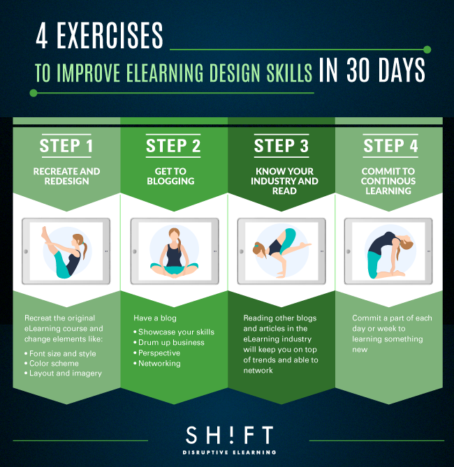 With these easy exercises, you will see your eLearning courses begin to improve quickly and continuously. Read on to find out how a single month of simple tasks can make you a better designer.