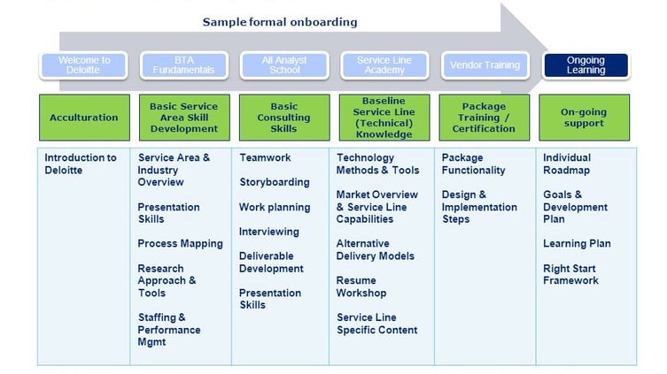 2) Learning Paths: Here’s where you would piece together various stages through which the learner will evolve while working for you; how they will evolve over time (e.g. Intern, Junior Associate, Assistant Manager, Sales Manager, Vice President of Sales…etc.); and what types of learning support might they require.