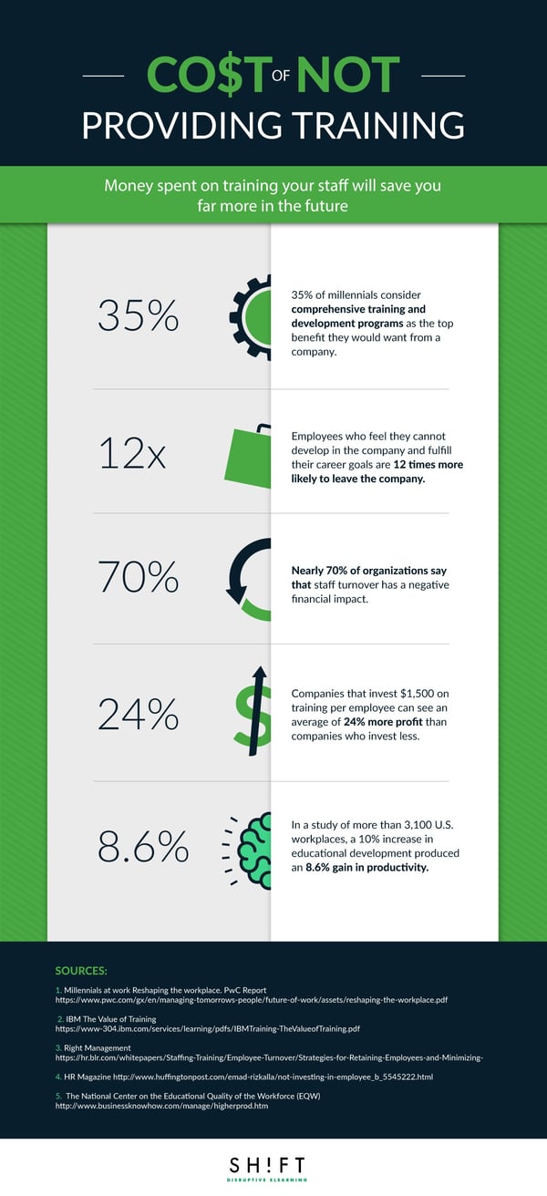 According to HR Magazine companies that invest $1,500 on training per employee can see an average of 24% more profit than companies that invest less.