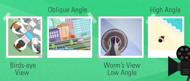 - Oblique Angle — shot taken at a tilt. Adds a level of disorientation and engages.
