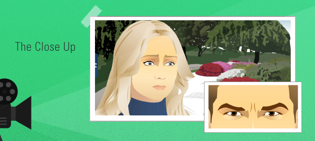 This type of shot focuses on the upper part of the object/subject, offering a targeted view of a single area/region or aspect of the image and hence adding emphasis to the scene. Examples include facial expressions of the subject and the details of part of an object. Including strong and vivid details will make your story come alive for the learner. Detailed shots help learners connect to the story and give the story credibility.