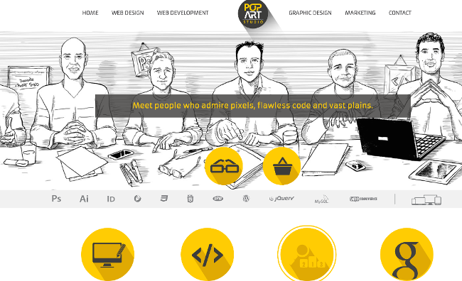 Para los diseñadores eLearning que quieren traer la individualidad, la personalidad y el atractivo a sus cursos, la nueva tendencia son los bocetos dibujados a mano, acompañados por el uso de tonalidades amarillas. Esta tendencia puede ser utilizada en aquellos cursos eLearning centrados en la promoción de la creatividad. Recuerde que los estudiantes están interesados en la búsqueda de significado y la inspiración para cambiar ciertos comportamientos, y este estilo de diseño transmitirá este mensaje exactamente.