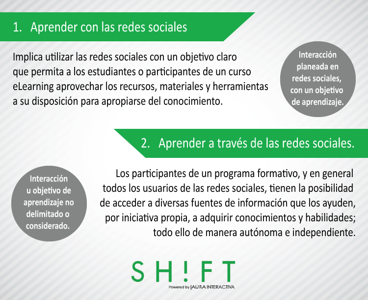 Para responder a esta pregunta, algunos autores mencionan dos dimensiones acerca del aprendizaje y las redes sociales: