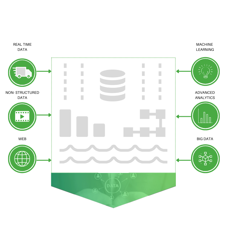 Unified and unstructured repository for big data analysis and crossovers between different data environments.